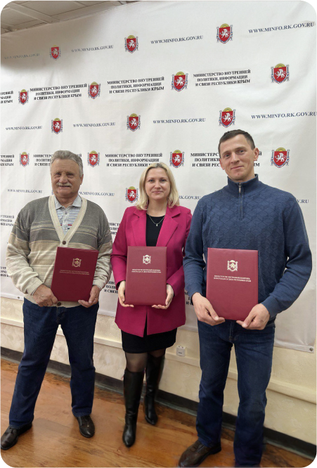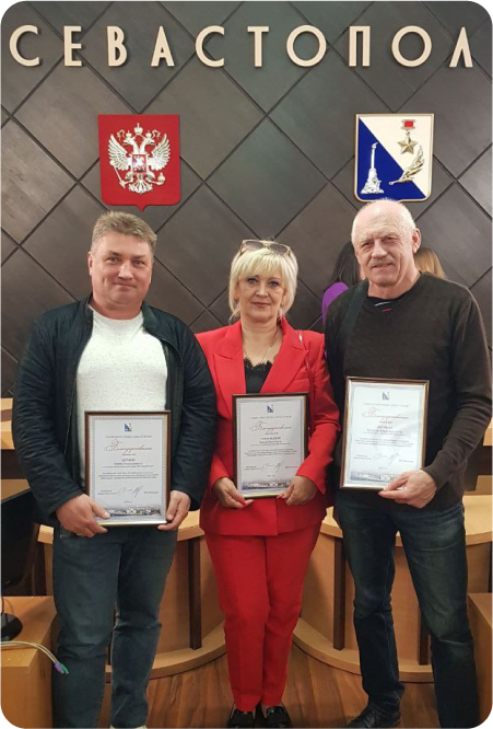 Наши сотрудники регулярно удостаиваются почётных грамот от Министерства внутренней политики, информации и связи Республики Крым, а также губернатора Севастополя за добросовестный труд, высокий профессионализм и значительный вклад в развитие отрасли. Мы гордимся нашей командой и стремимся поддерживать её мотивацию и развитие.